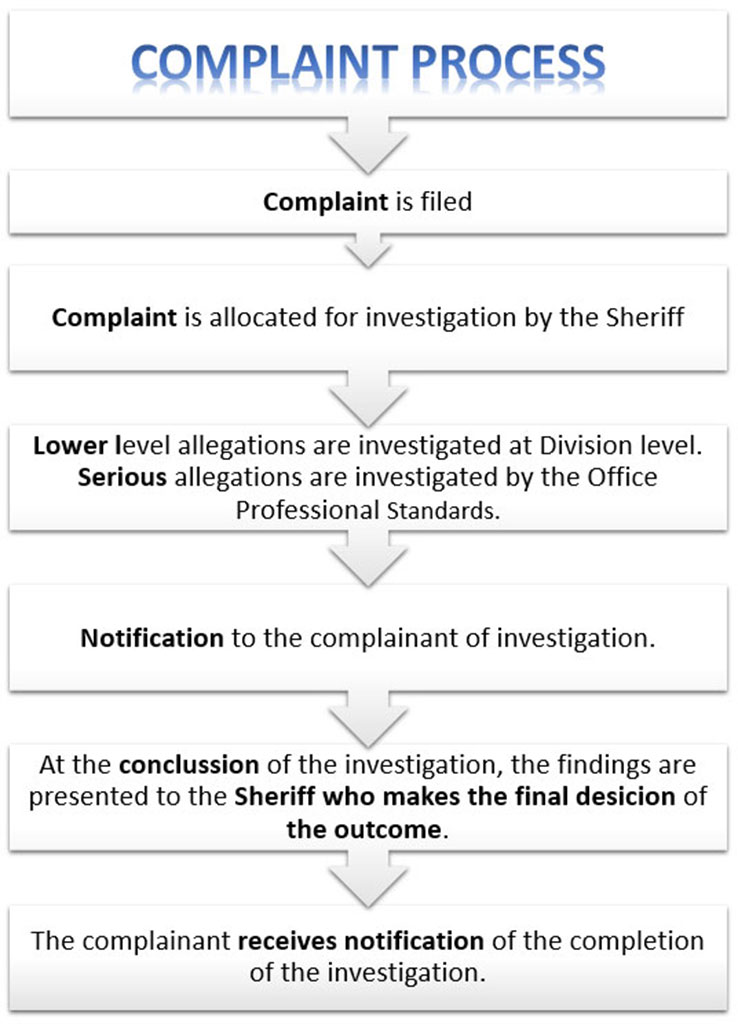 Every complaint is allocated for investigation by the Sheriff. Lower level allegations are investigated by the Division Level. Serious allegations are investigated by the Office of Professional Standards.