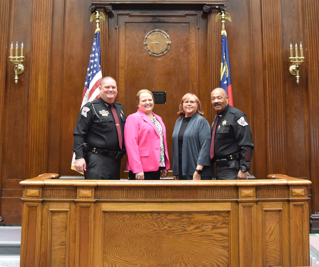 Sheriff Johnathan Morgan, Stacey Morgan (Left), Ret. Lt. Darlene Broadus, and Chief Deputy Jack Broadus (Right)